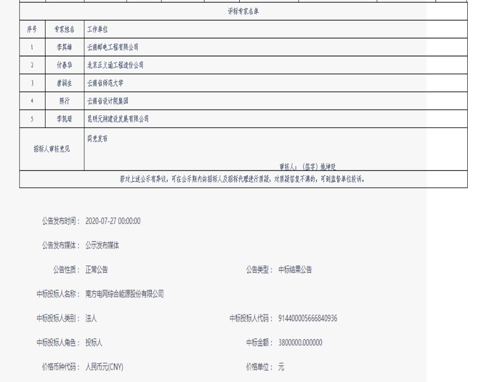昆明元朔建设发展有限公司电费托管服务项目中标结果公示
